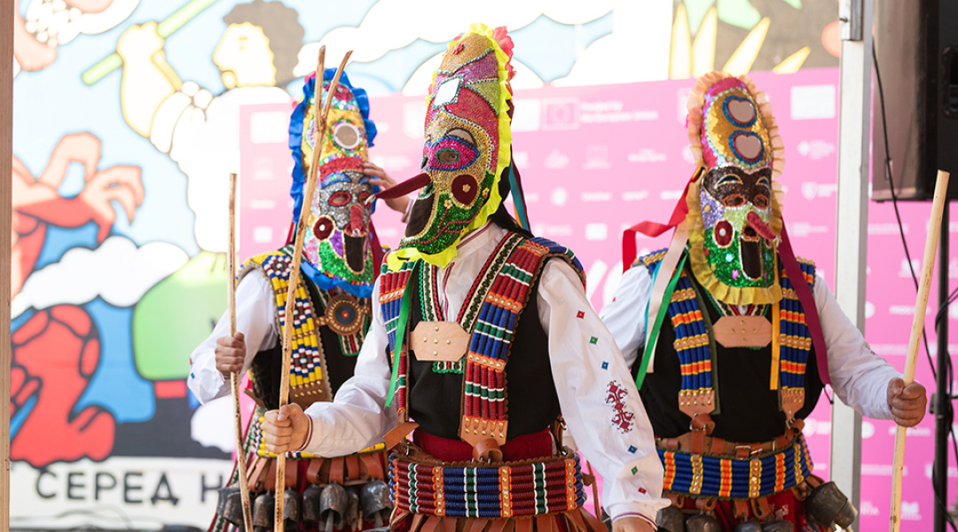 Гостей зустрічали перформанси з болгарськими кукерами та українською маланкою - як символічний культурний діалог.