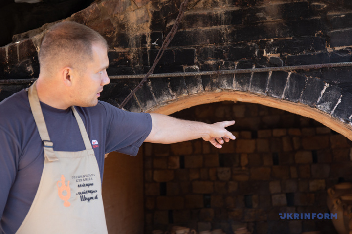 - Принцип такий самий, але розмір менший, тому цю піч можна випалити за три дні. Якщо це будуть звичайні мисочки чи глечики, – уточнює майстер.