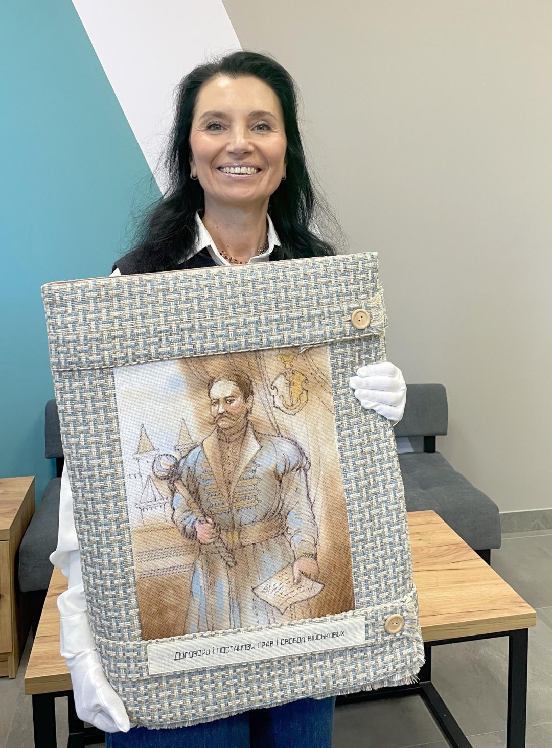 «Мрії щодо майбутнього України, які утвердили в цьому акті гетьман Пилип Орлик та його помічники, перегукуються з нашими тривожними днями, ‒ ділиться майстриня. ‒ Коли я вишивала преамбулу, то усвідомлювала, що в ній висловлені й сьогоднішні надії... На це вказують, наприклад, умови, викладені в "Пактах…", за яких українська держава житиме щасливо: "…щоб після звільнення, дасть Бог, Вітчизни нашої від ярма московського…"; "… як заспокоїться наша Вітчизна від смути воєнної і після звільнення її, дай Боже, від підданства московського…"; "…після звільнення Вітчизни від іга московського…". Зважте, що задеклароване це 315 років тому…»