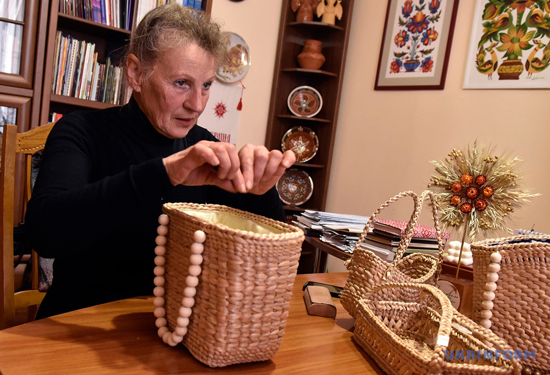 - Я вже пенсіонерка і, як кажуть, народна майстриня. Хоча це визначення не дуже мені подобається: нас, тих, хто займається рогозоплетінням, у селі завжди називали «кошоплетами» і «торбарями». Мене це в дитинстві дуже ображало, адже я спадкоємиця цієї традиції. Моя мама робила ці кошики, і мій дядько. Старше покоління нашої родини – бабусі-дідусі – цим не займалися. Бо в них був колгосп, норма – часу не мали, і зарплатня була така, що підробітку не потребували. Мамі моїй, власне, фінансове становище теж давало змогу не займатися рогозоплетінням для заробітку. Але усі її подружки були трохи бідніші, і кошики їм були за приробіток. Вони вечорами збиралися у когось на оденки (на оденках жінки узимку разом виконували якусь ручну роботу: шили, вишивали, дерли пір’я тощо, – ред.) і разом плели кошики, а мама залишалась сама. Тому вона до них приєдналась, втягнулася у цю справу, а з часом дійшла до найвищого рівня майстерності. Її кошики дуже хвалили!