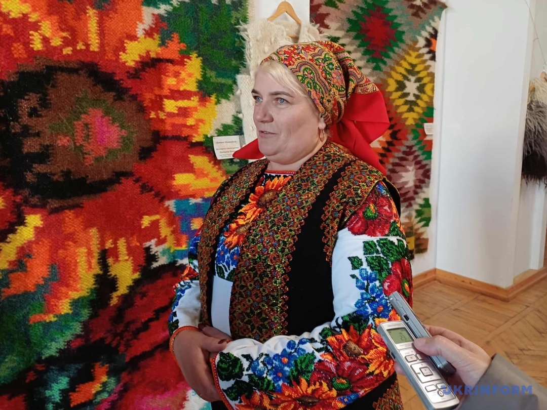 Вона займається ліжникарством майже 30 років. Каже, люди тепер хочуть ліжники не чесані і без використання штучних барвників. А ще великий попит мають безрукавки з вовни та гуні.