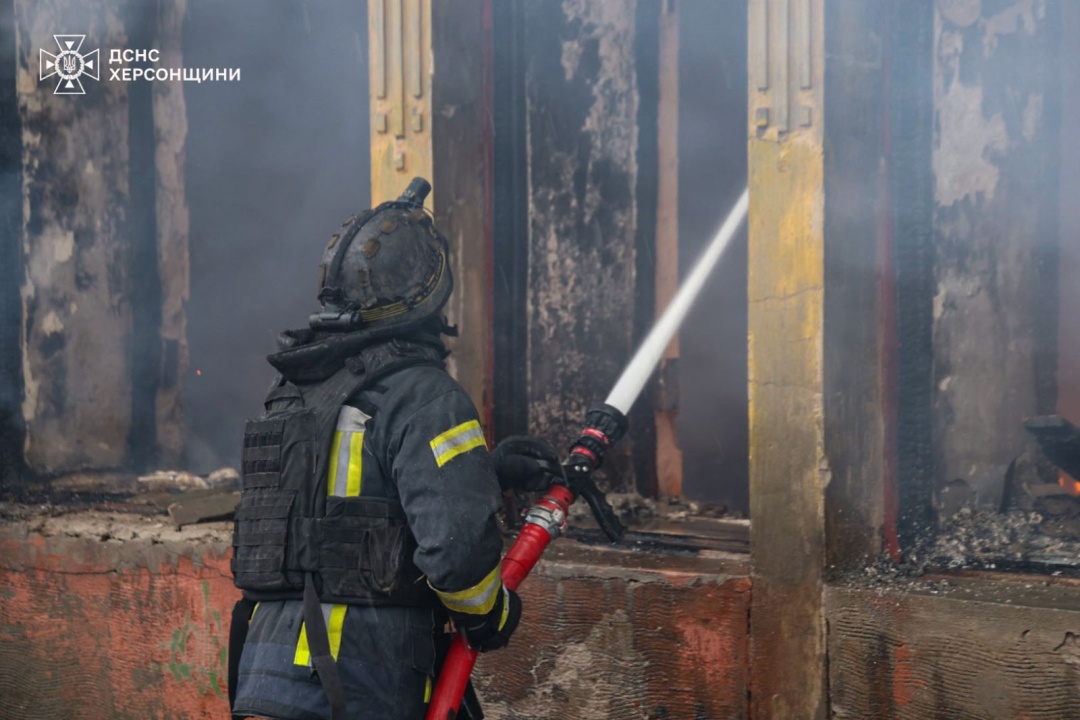 За інформацією ГУ ДСНС, 26 січня в Херсоні внаслідок артобстрілу виникла пожежа у триповерховій нежитловій будівлі.