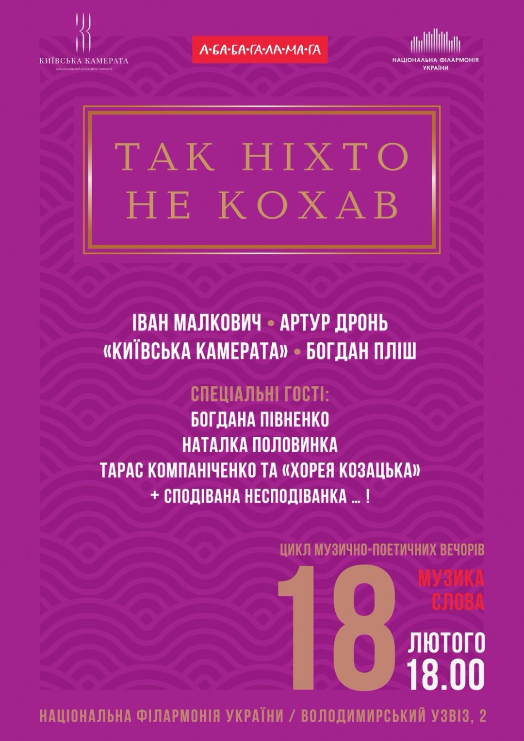 «Музично-поетичне дійство «Так ніхто не кохав» створить простір для глибокого переживання тем любові, пам’яті та людської стійкості через синергію музики й слова», - підкреслили у відомстві.