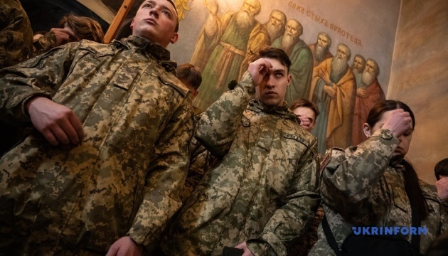 Молитву за Україну звершив Митрополит Київський та всієї України Епіфаній в Хрестовоздвиженському храмі Лаври, де розташовані Ближні печери, повідомляє кореспондент Укрінформ.
