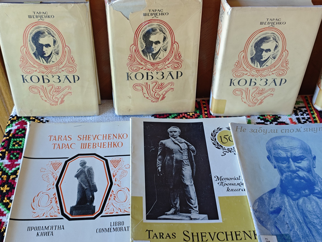 «В експозиції виставки можна побачити дослідження Романа Задніпрянського «Чи Шевченко був “малоросом”» із колекції провідного діяча ОУН Зеновія Книша, чотиритомне видання «Кобзаря», надруковане видавничою спілкою «Тризуб» у Вінніпезі, книгу Дмитра Донцова «Незримі скрижалі Кобзаря», видану в Торонто. Також є антологія перекладів творів Шевченка різними мовами, яку надрукували у Чикаго», - розповіла головна зберігачка фондів музею Оксана Ваврик.