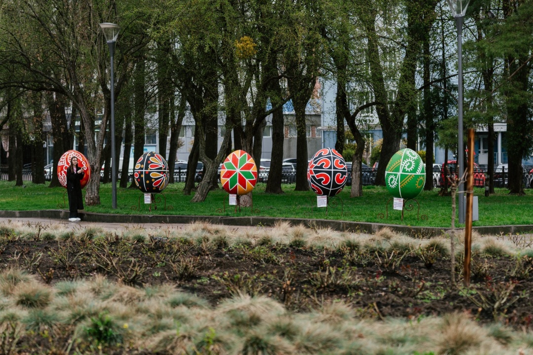 Розмістили великодні писанки за кінопалацом “Україна”, поблизу алеї імені Чайки.