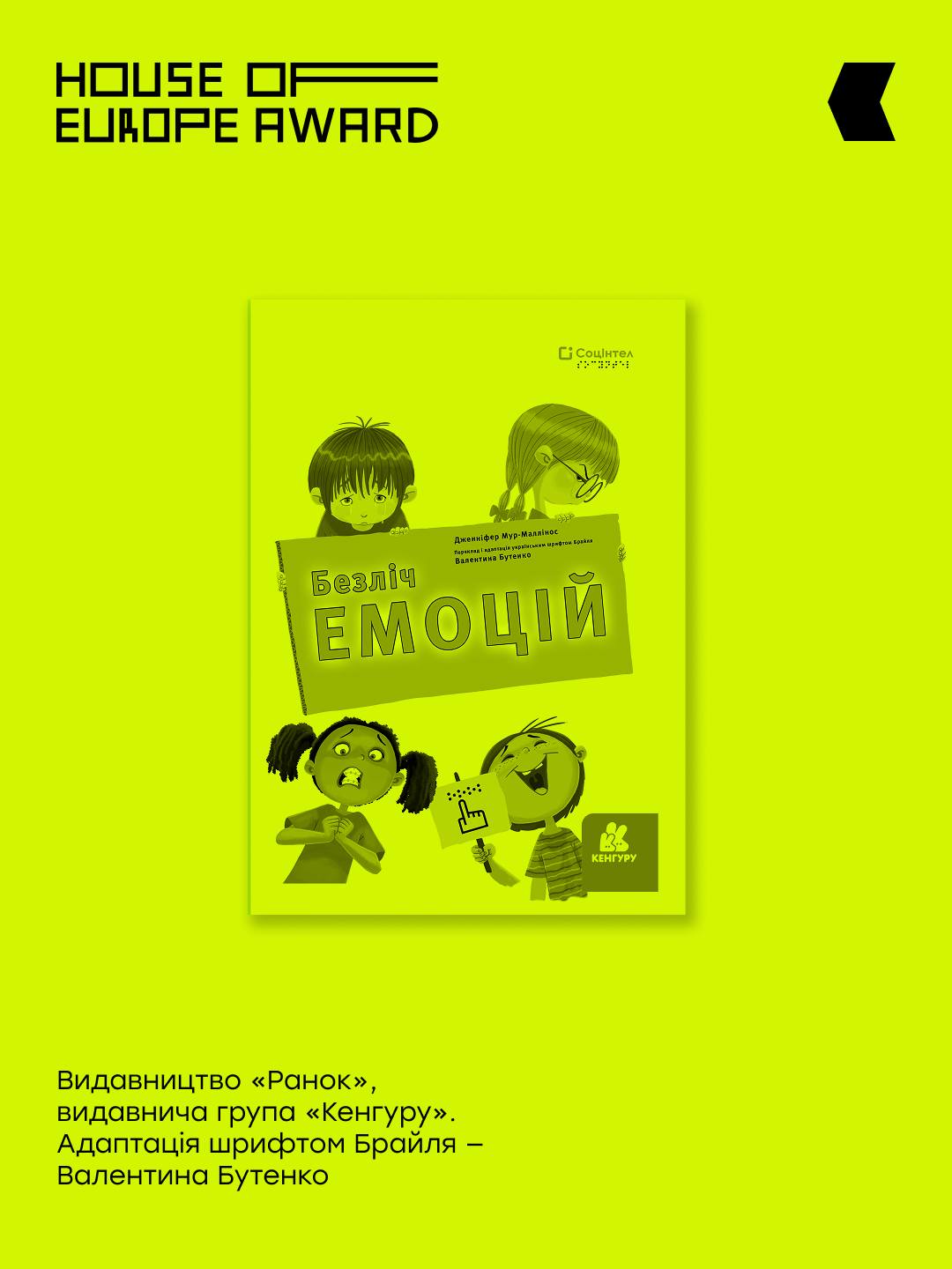 «Безліч емоцій» Дженніфер Мур-Маллінос - дитяча книжка про емоції, адаптована шрифтом Брайля для незрячих та слабозорих дітей. Видання допомагає дітям розпізнавати й називати свої почуття через короткі історії з повсякденного життя. Книжку випустило видавництво «Ранок» у видавничій групі «Кенгуру», адаптацію шрифтом Брайля здійснила Валентина Бутенко;
