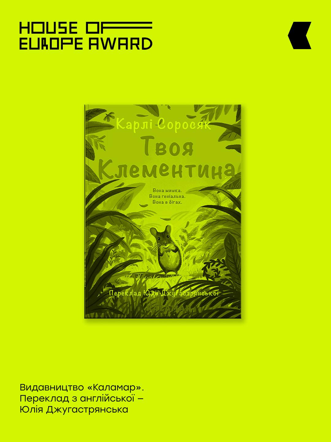 «Твоя Клементина» Карлі Соросяк - роман у листах про лабораторну мишку-генійку, яка опиняється на волі, але не може забути друзів, що залишилися у клітках. Це історія про емпатію, відповідальність і моральну відвагу. Українське видання побачило світ у видавництві «Каламар» у перекладі Юлії Джугастрянської;