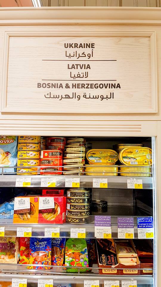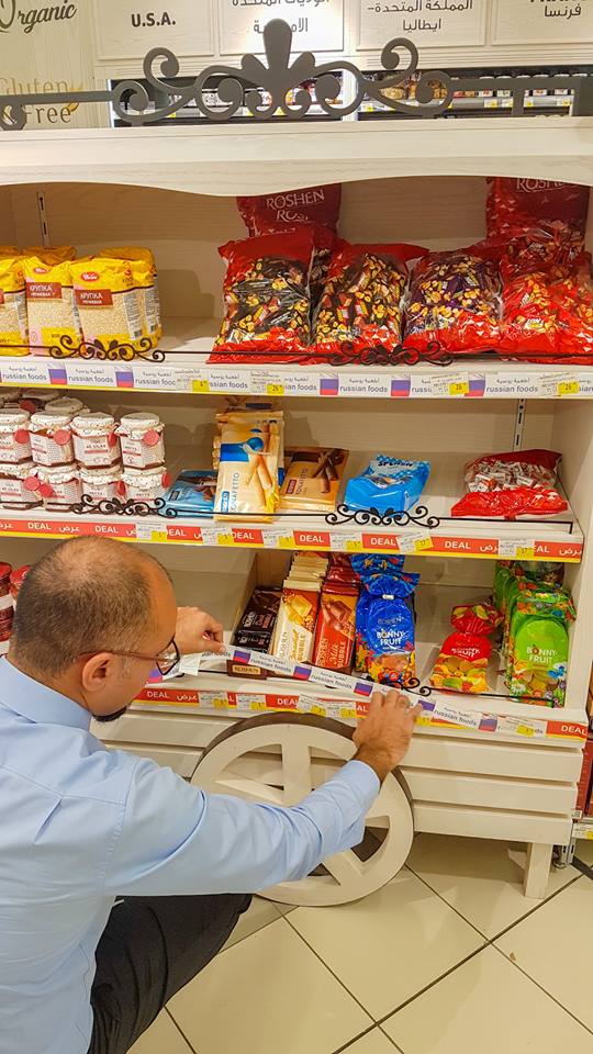 «Пам'ятаєте вересневий пост про те, як в одній з найбільших мереж гіпермаркетів Еміратів українські товари продавали під російським прапором? З менеджером Carrefour Yas Mall, де й було виявлено неточність, ми обговорили можливість виділення для української продукції окремого стенду. Він пообіцяв попрацювати над цим - і ось результат: тепер Україна має власну вітрину в одному з найбільших гіпермаркетів Абу-Дабі! », - написав Євгеній Семенов.