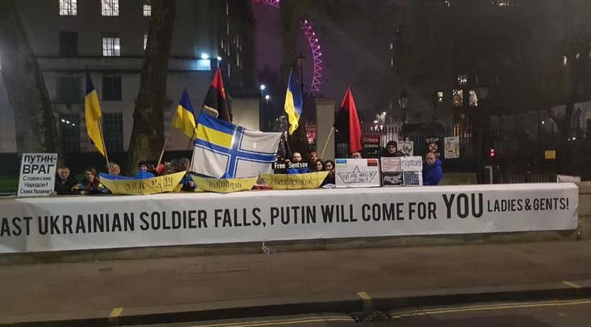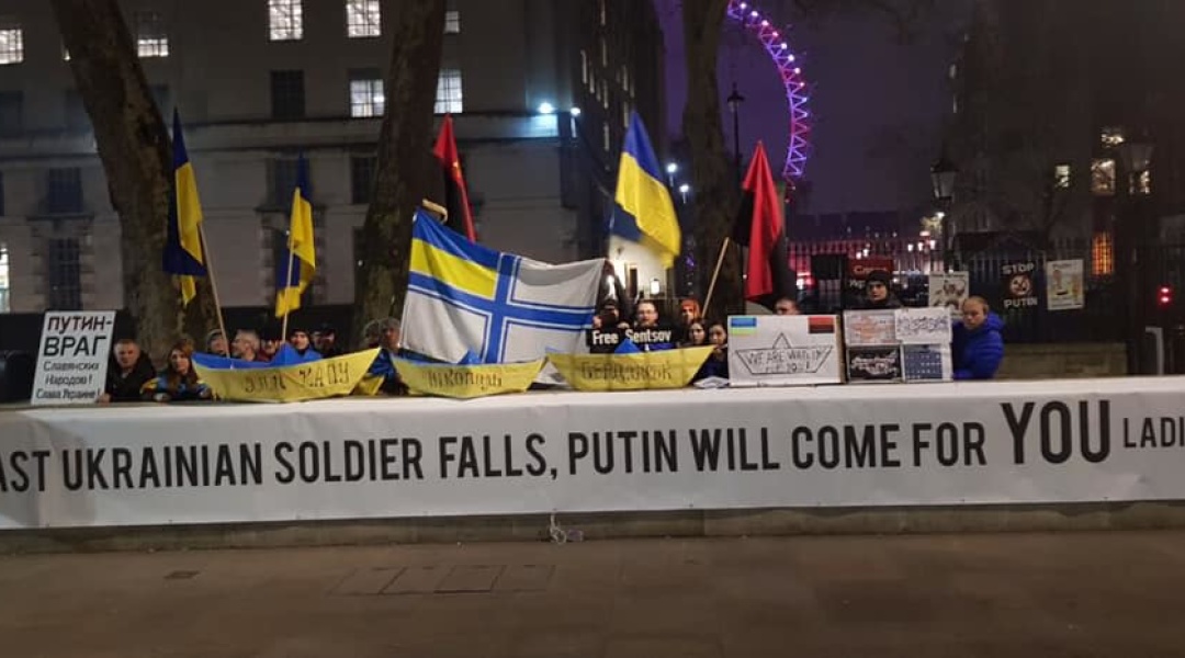«На знак солідарності з українським народом, підтримуючи 30-денний військовий стан в Україні, волонтери «Лондон Євромайдан» та друзі України з багатьох країн провели 30-денну демонстрацію біля офісу прем'єр-міністра Великої Британії з метою привернути увагу громадськості до тривалої російської агресії проти України та долі 70 незаконно ув'язнених українців і 24 військовополонених моряків», - наголосили організатори акції.