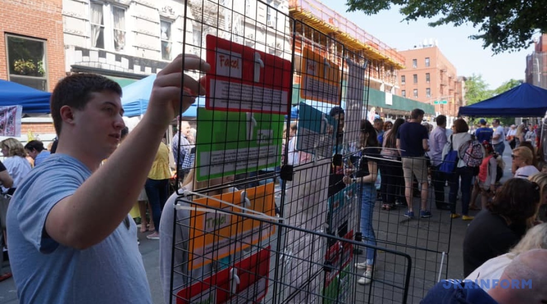 На стенді української волонтерської організації Razom for Ukraine відвідувачам пропонували у формі гри перевірити свою здатність відрізняти фейкові новини від справжніх. Увагу американців тут звертали на те, що Україна стоїть на передовій боротьби з дезінформацією.