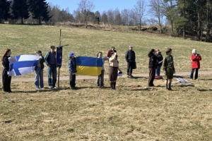 Окрім українців, участь у ній узяли нідерландці, які вже понад рік охороняють 20-метровий український стяг, який щоранку вивішують навпроти російського посольства. Охорону встановили після того, як росіяни вкрали кількадесят разів викрадали прапори - сьогодні її забезпечують півтори сотні людей з усіх Нідерландів.