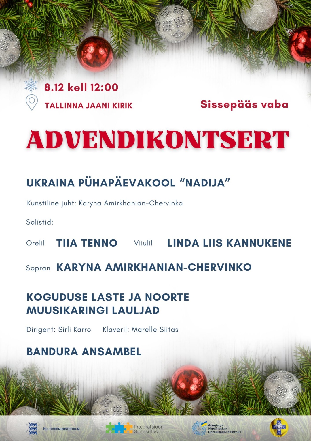 Культурний захід буде проведений у співпраці з музичним гуртком церкви Св. Іоанна (Koguduse laste ja noorte muusikaline lauljad).