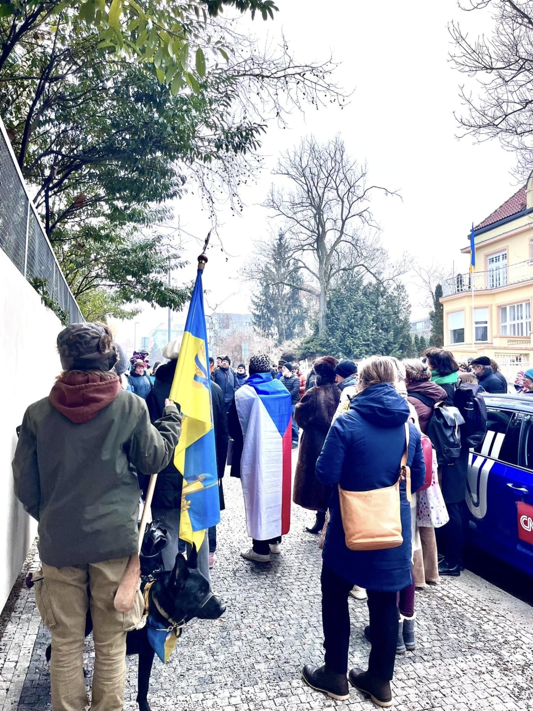 Перед будівлею посольства України у Празі близько ста українців і чехів зібралися, щоб висловити свою підтримку Україні та вшанувати памʼять тих, хто загинув від рук російського агресора.
