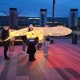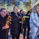 Також у центрі міста музиканти виконували українські пісні, загорнуті в синьо-жовті прапори українці підспівували формуючи довкола моделі легендарного літака «Мрія» серце зі свічок.