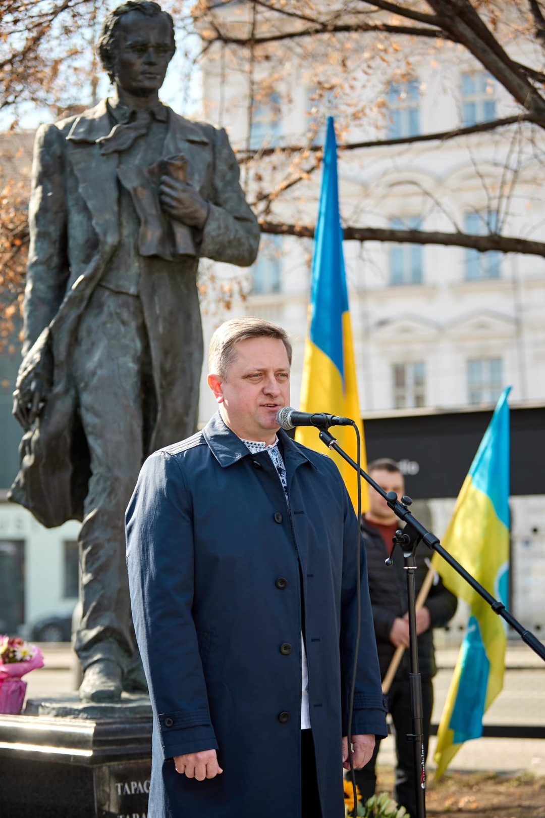 «Це великий день для всього українства у всьому світі. Тарас Шевченко для нас не лише поет, творець, художник, він є величезним символом незламності українського духу, символом боротьби за справедливість, свободу, за українську державність. Він, як ніхто інший розумів, що у своїй хаті – своя правда, своя сила і воля. Він робив все для того, щоб цей дух українства підтримувати довкола себе. Сьогодні ми маємо цю величезну спадщину творчості Тараса Шевченка. Дуже добре, що ми пам’ятаємо та об’єднуємось навколо нашого великого пророка», – зазначив він.