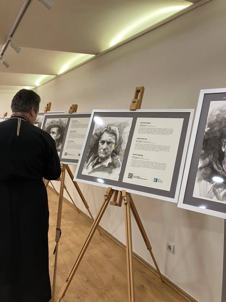 Виставка презентує 35 монохронних портретів незаконно утриманих цивільних українців, насильно викрадених Росією з окупованих українських земель.