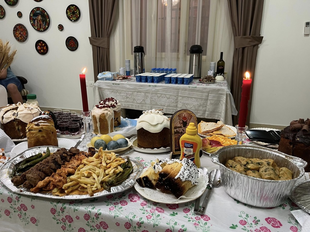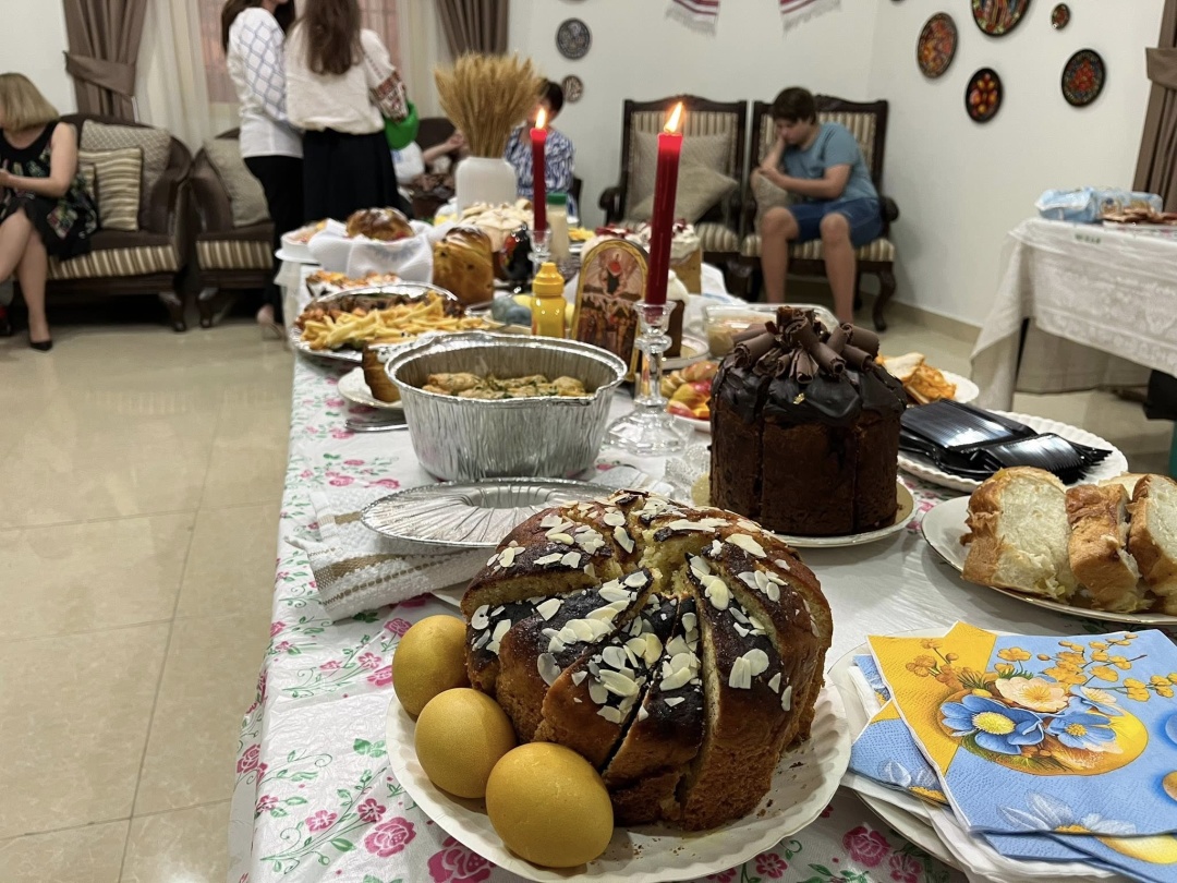 Особливим моментом святкування стало духовне благословення та молитва, які надіслав з України настоятель Свято-Миколаївського храму ПЦУ протоієрей Тарас Мельник. Саме він звершив освячення великодніх пасок у храмі – символічний акт, що підкреслив зв’язок українців у Катарі з рідною землею.