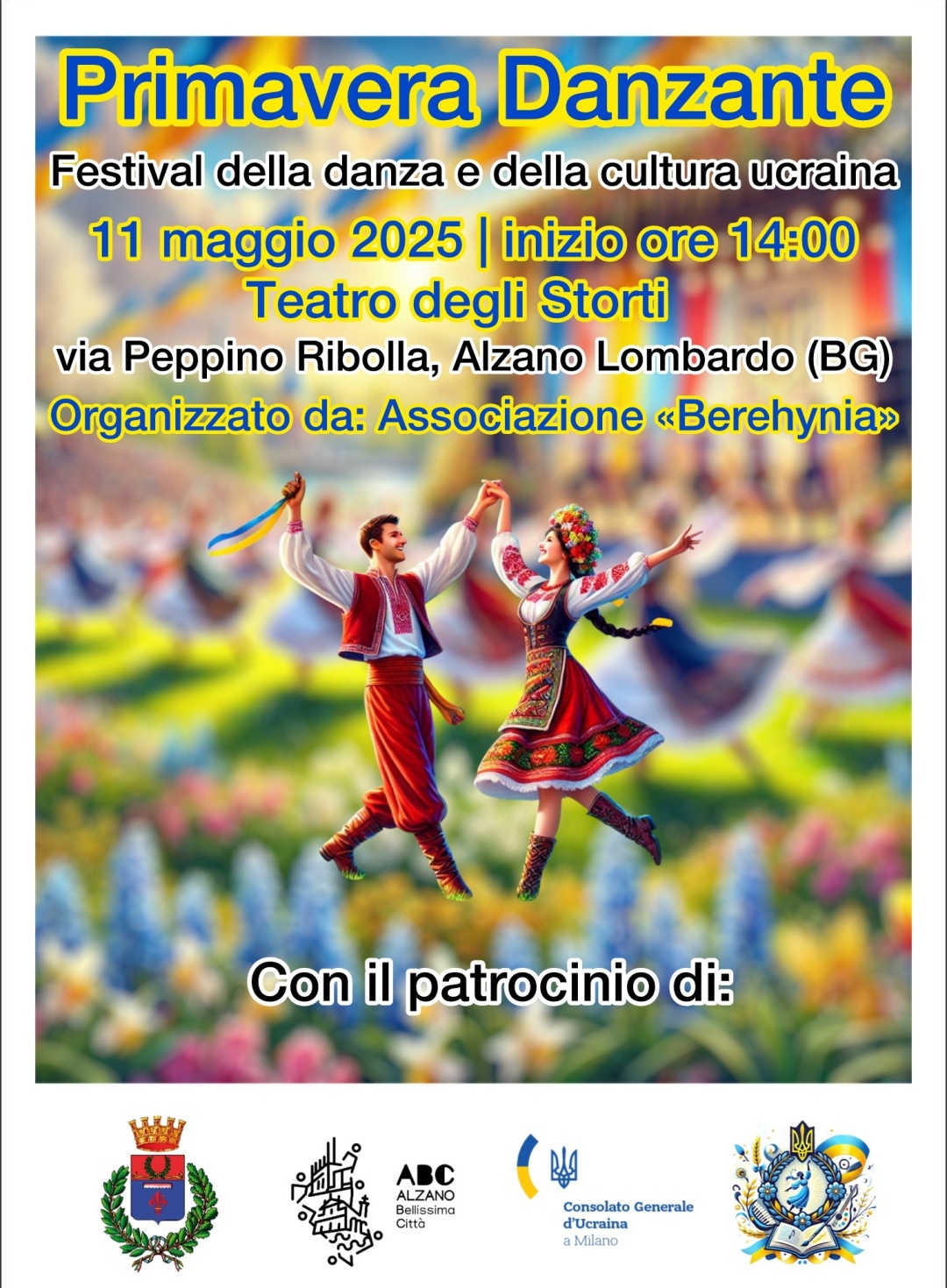 Асоціація Associazione «Berehynia» запрошує на свято українського танцю та культури – фестиваль «Танцювальна весна», що відбудеться у неділю, 11 травня, в італійському місті Альцано Ломбардо.