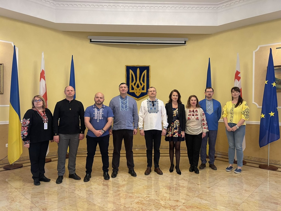 Крім того, у вишиті українські сорочки вбралися працівники посольства України в Грузії.