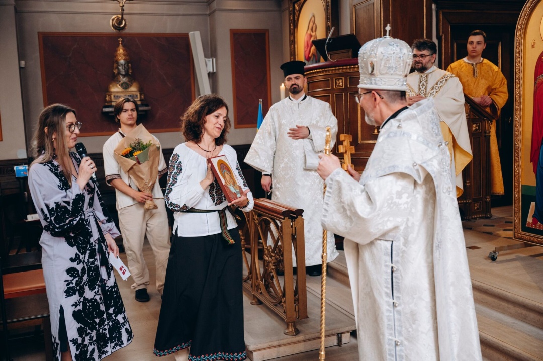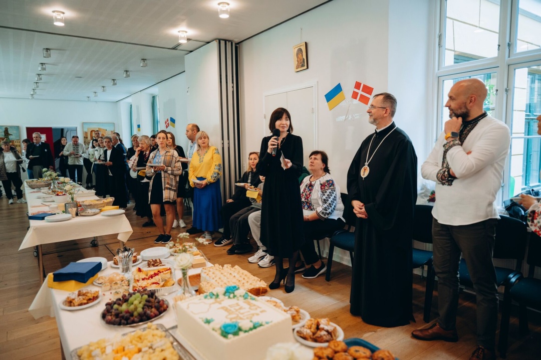 Своєю чергою парафіяни подякували єпископу Богдану за архиєрейське благословення та подарували йому ікону Богородиці з дитятком Ісусом, написану парафіянкою громади Наталею Нільсен. Також українці різних громад спільно привітали душпастиря з 20-літтям відновлення УГКЦ в Данії.