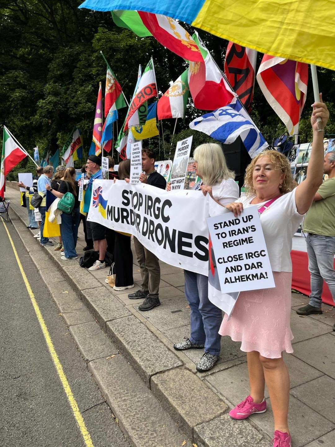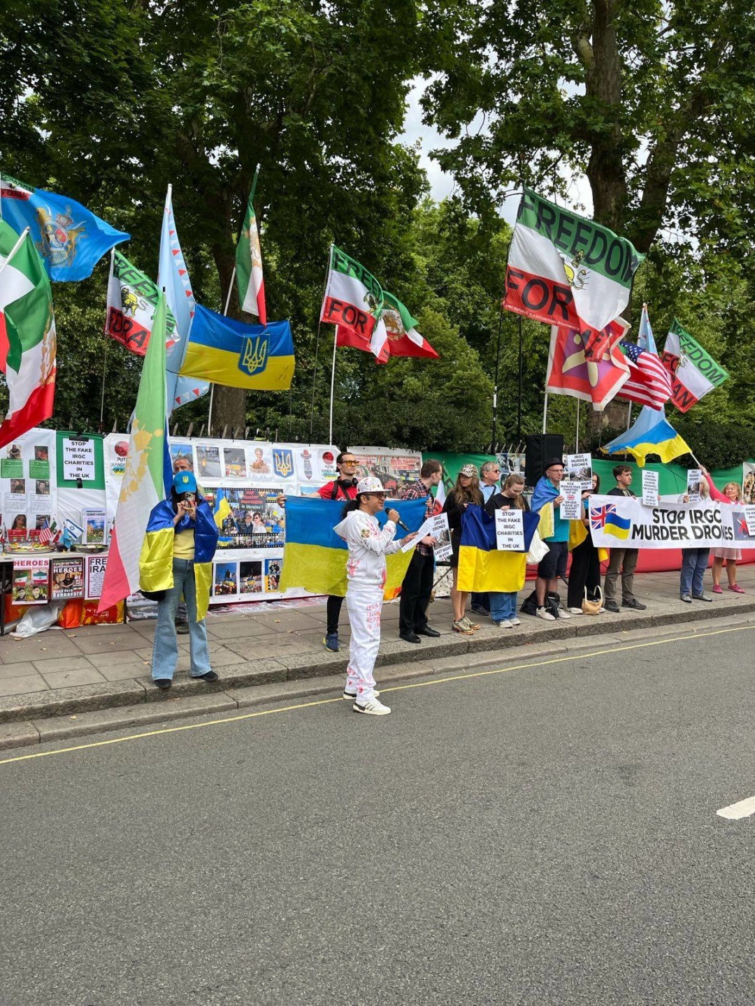 Представник Студентського союзу України Данило Нікіфоров заявив: «Ми протестуємо проти постійної підтримки Іраном російської військової машини та, перш за все, проти постачання "Шахедів", які тероризують українські міста вже понад три роки. Ми закликаємо уряд Великої Британії закрити «благодійні організації», пов’язані з КВІР, які поширюють пропаганду Тегерана та допомагають фінансувати виробництво безпілотників, що вбивають мирних жителів».