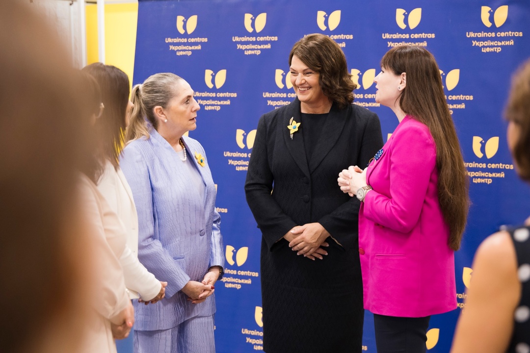 Міхаль Герцог зустрілася з Першою леді Литви Діаною Наусєдєнє, Послом України у Литві Ольгою Нікітченко, проректором Університету Вітовта Великого Вільмою Бієйкєнє, керівницею Українського центру Ерікою Вайгінєнє, а також координаторами та волонтерами Центру.