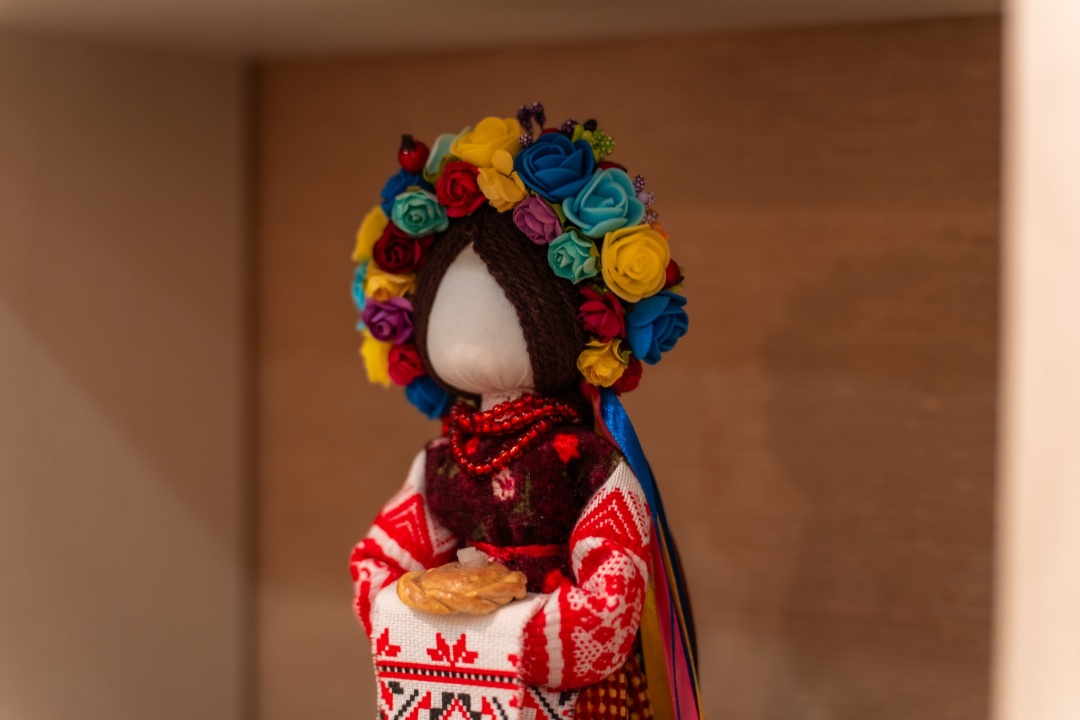 Експозиція представляє 80 унікальних об’єктів українського народного мистецтва, серед яких писанки, ляльки-мотанки та традиційні строї.