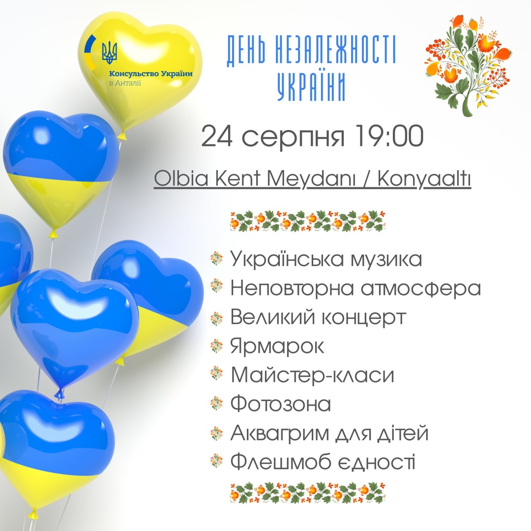 24 серпня українська громада Анталії збере друзів та гостей на масштабне святкування Дня Незалежності України під гаслом «Єднаймося!».