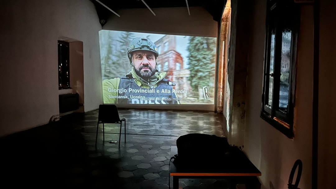 Окремої уваги вартує «кімната очікування», де було представлені відео італійського журналіста Giorgio Provinciali з постраждалих міст України.