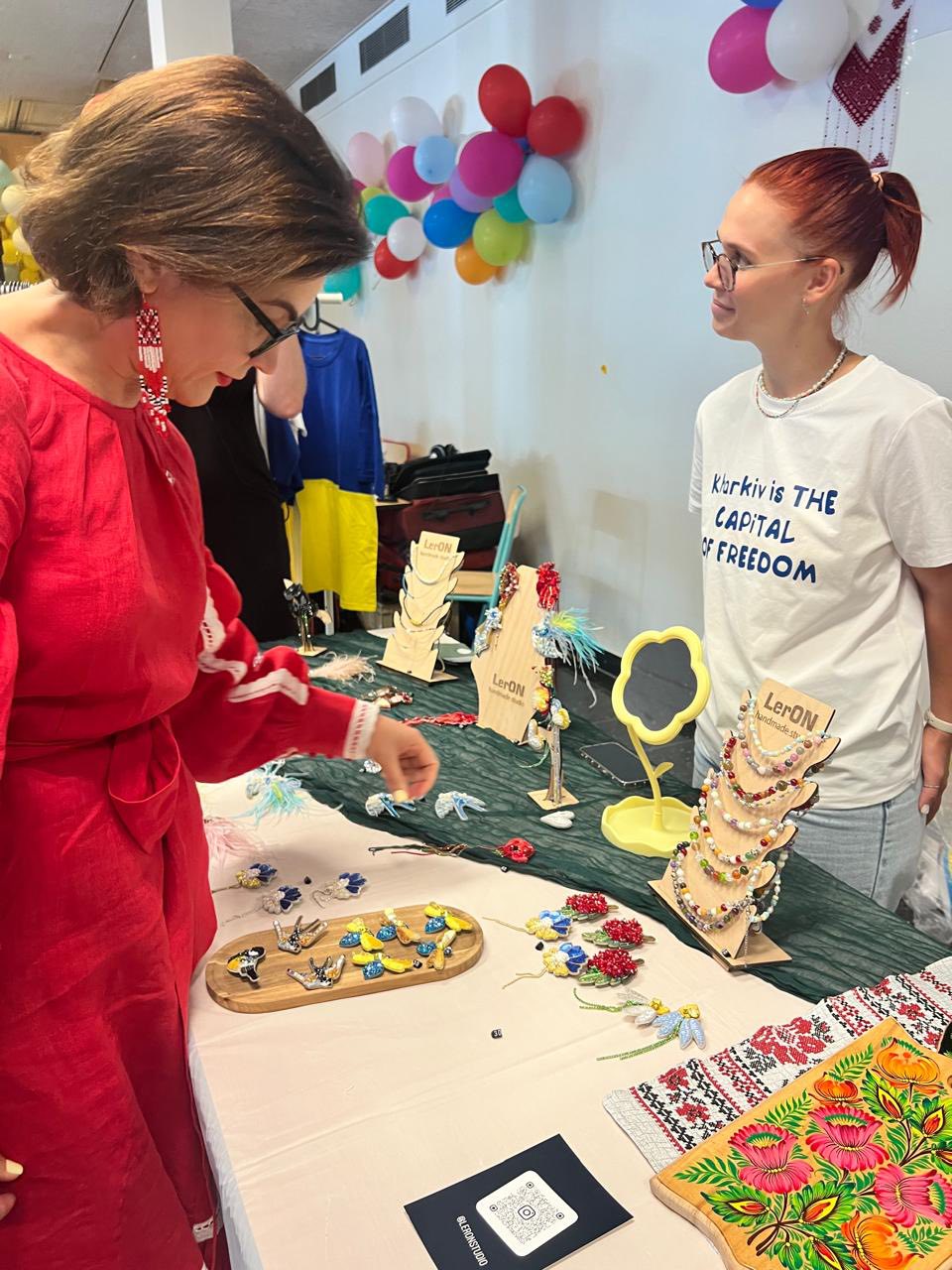 На ярмарку панувала справжня українська атмосфера. Майстрині представили безліч ексклюзивних робіт ручної роботи. Серед них особливе місце посіли брошки з незламного Харкова, що саме в цей день відзначав своє 371-річчя.