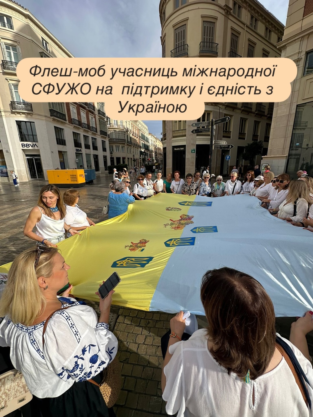 Після завершення конференції делегатки разом з українською громадою Малаги вийшли на головну площу міста на мирний флешмоб. Учасниці розгорнули великий прапор України, заявивши, що «Наш голос – за мир і за Україну».