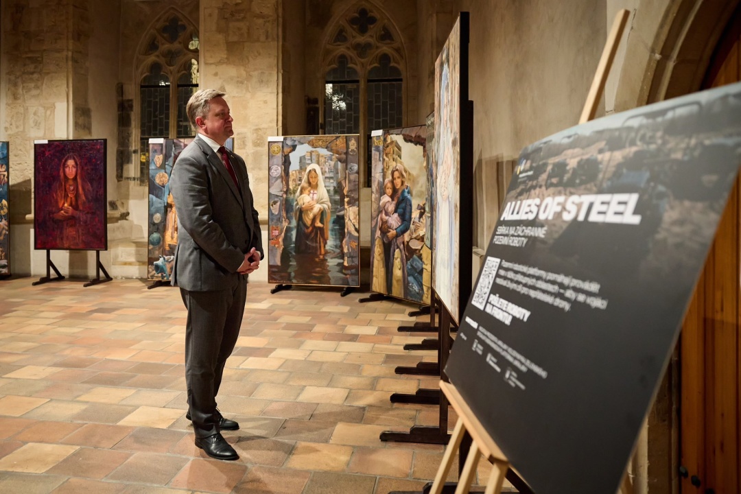 Радник-посланник посольства України в Чехії Віталій Усатий під час вітального слова підкреслив глибинний зміст проєкту: «Це не лише мистецький проєкт, але й духовне звернення, символ нашої боротьби, нашої віри та надії».