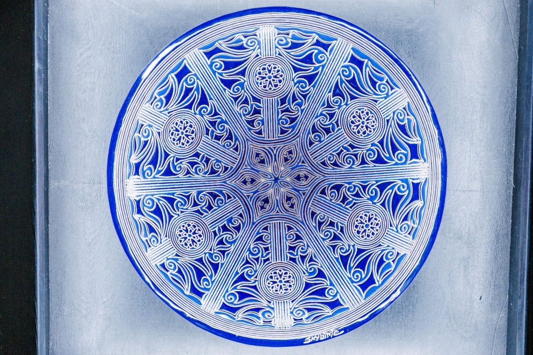 На виставці представлені декоративні щити – qalqan, створені художником Рустемом Скибіним. Традиційний бойовий щит кримських татар у його виконанні перетворився на витончений керамічний артоб’єкт, що поєднує символіку, орнаменти та сучасну художню мову.