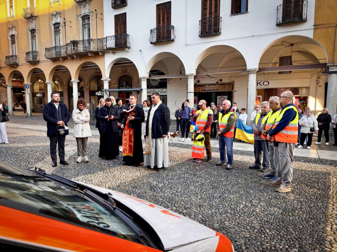 Освячення автомобілів здійснили отець Володимир Містерман, протопресвітер Міланського деканату, та отець Андрій Козак, душпастир з м. Алессандрія.