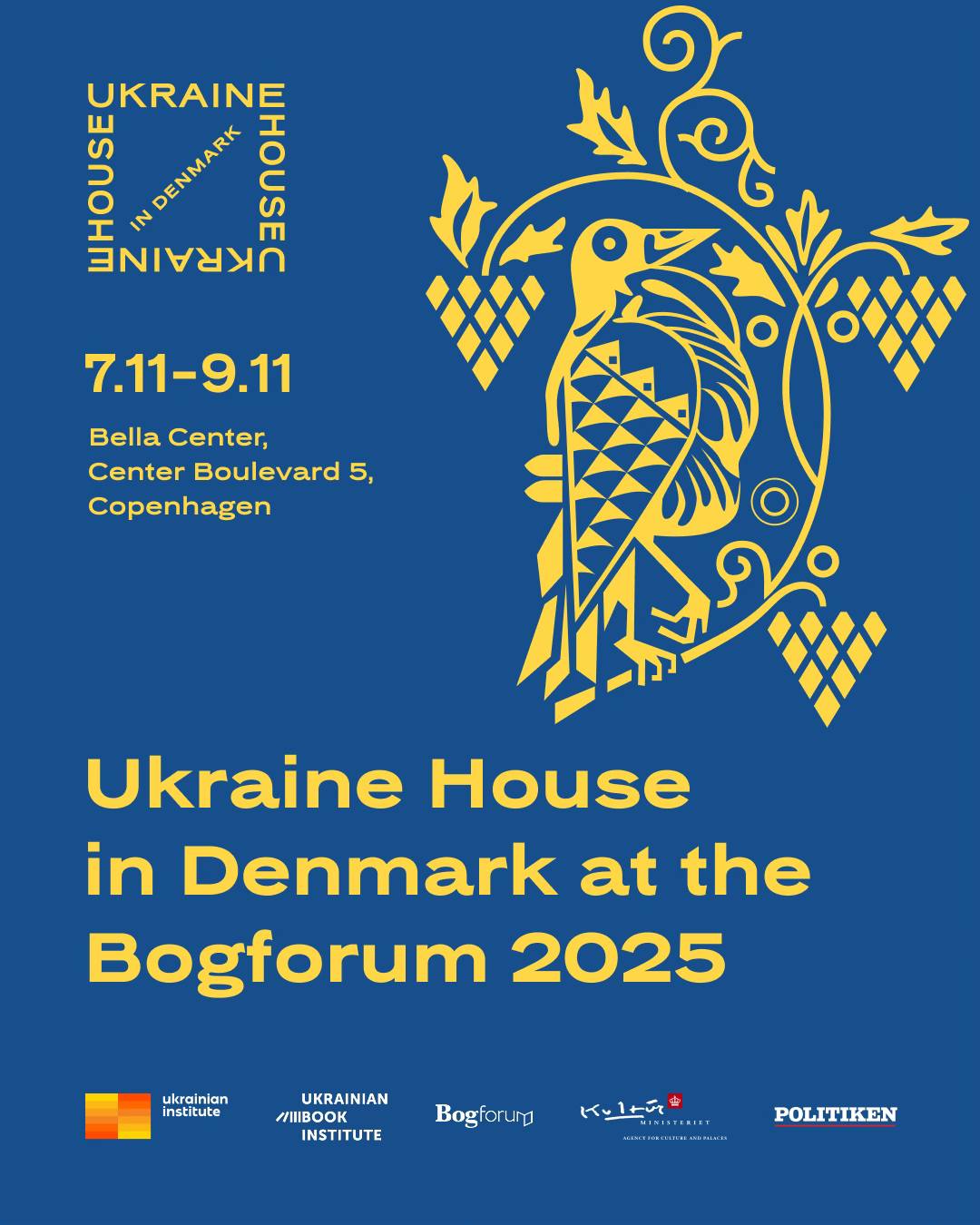 Де шукати український стенд: Bella Center Copenhagen (стенд: Hall C, C3-082). Дата: 7–9 листопада. Квитки: Доступні за посиланням: https://www.billetlugen.dk/campaign/bogforum/?affiliate=BOG