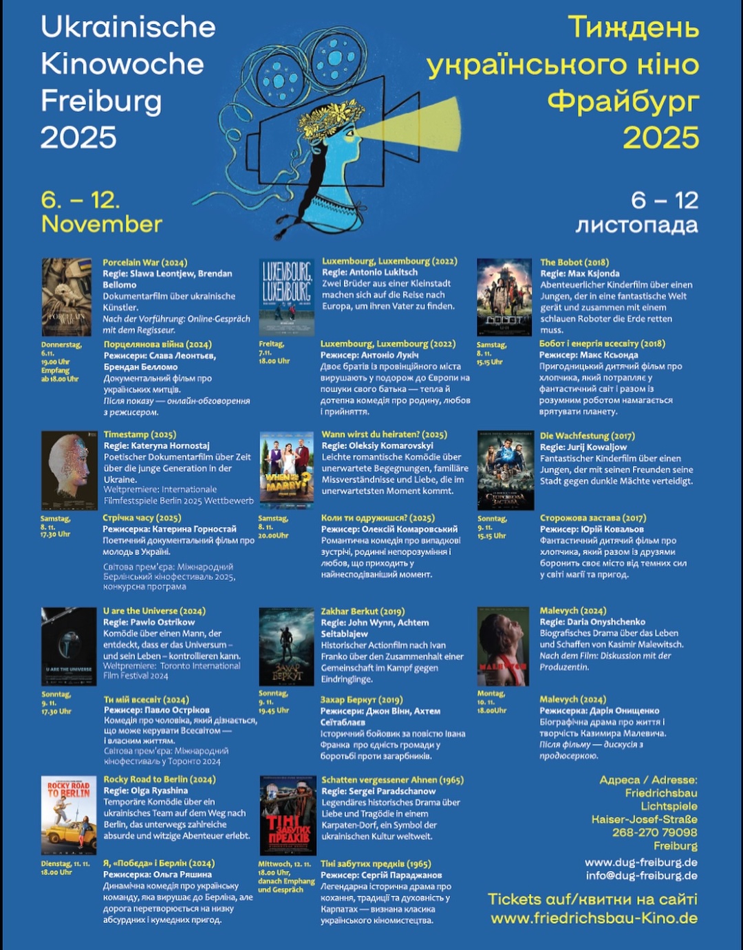 Як повідомляє Укрінформ з посиланням на фейсбук-сторінку Amal Berlin Ukraine, усі 11 фільмів із програми будуть показані в оригіналі, супроводжуючись німецькими субтитрами. Покази відбудуться у кінотеатрі Friedrichsbau Kino.