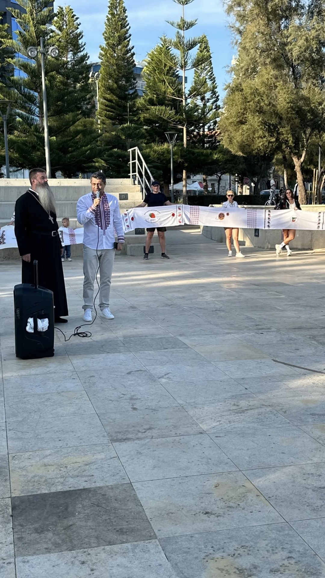 Учасники з Лімасолу, Нікосії, Ларнаки та Айя-Напи пронесли по променаду Молоса рушник довжиною 180 метрів. До ходи долучилися надзвичайний і повноважний посол України в Республіці Кіпр Сергій Ніжинський, представники Товариства Українсько-кіпрської дружби та «Пласт Кіпру».