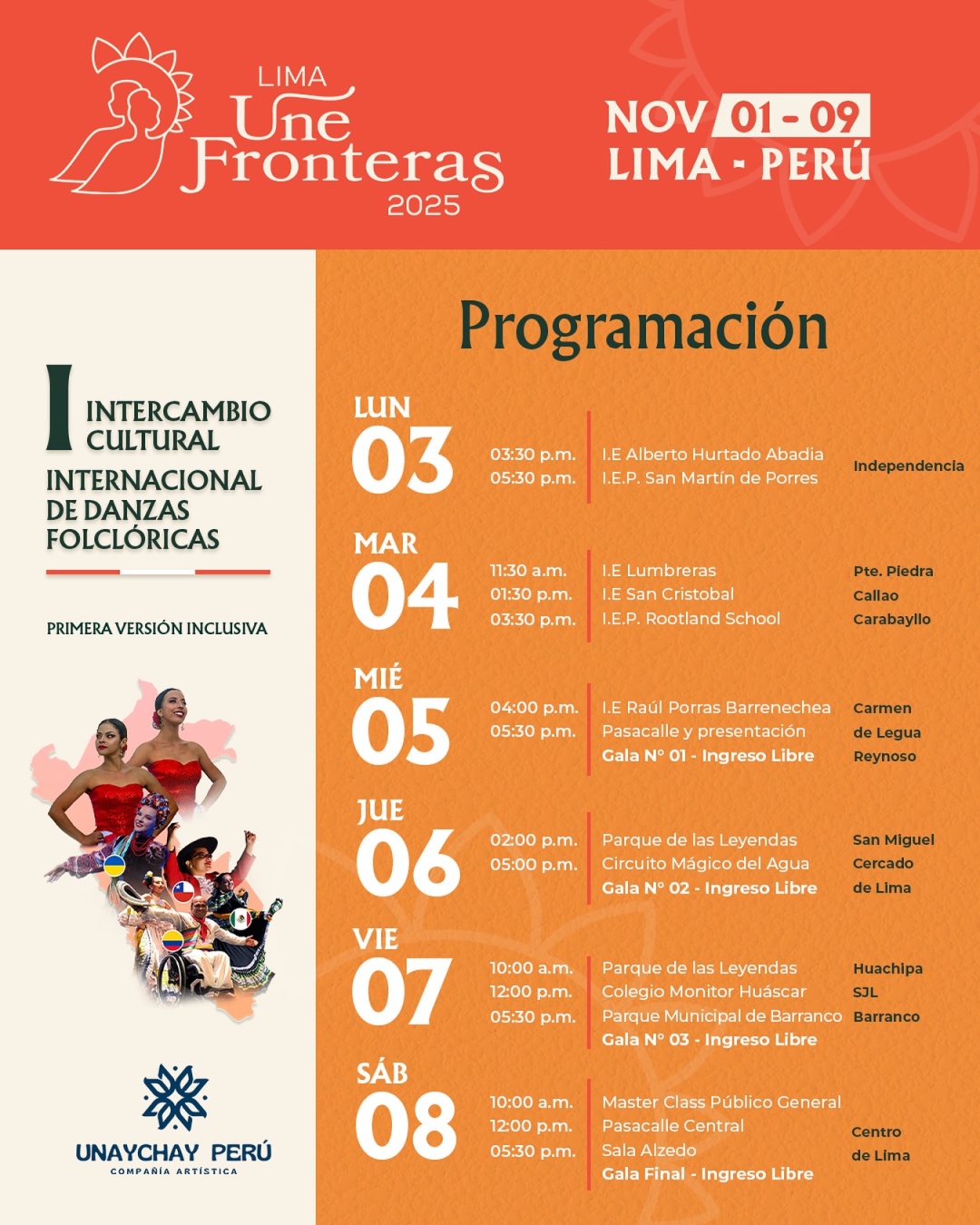 - Субота, 8 листопада: центральний парад і фінальний гала-концерт у центрі Ліми.