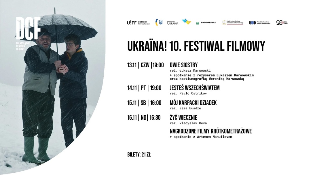 - 13.11 (четвер): Глибока драма «Дві сестри». Після показу запланована зустріч із режисером Лукашем Карвовським та костюмеркою Веронікою Карвовською.