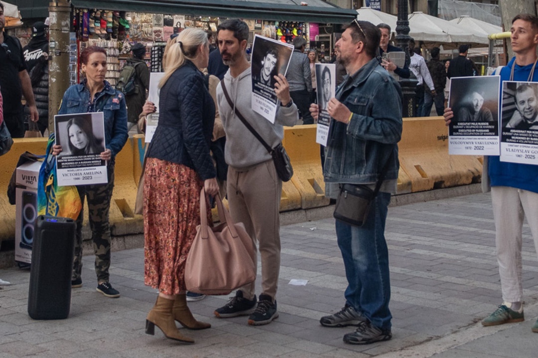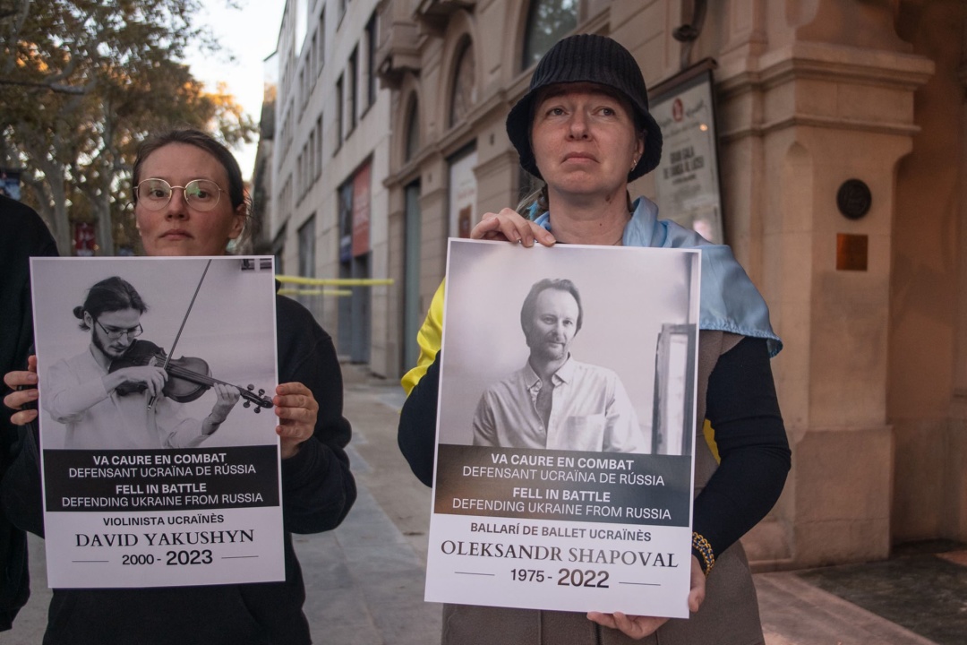 Активісти нагадали місту, що через російську агресію такі українські митці, як артист балету Олександр Шаповал і оперний співак Василь Сліпак, більше ніколи не вийдуть на сцену.