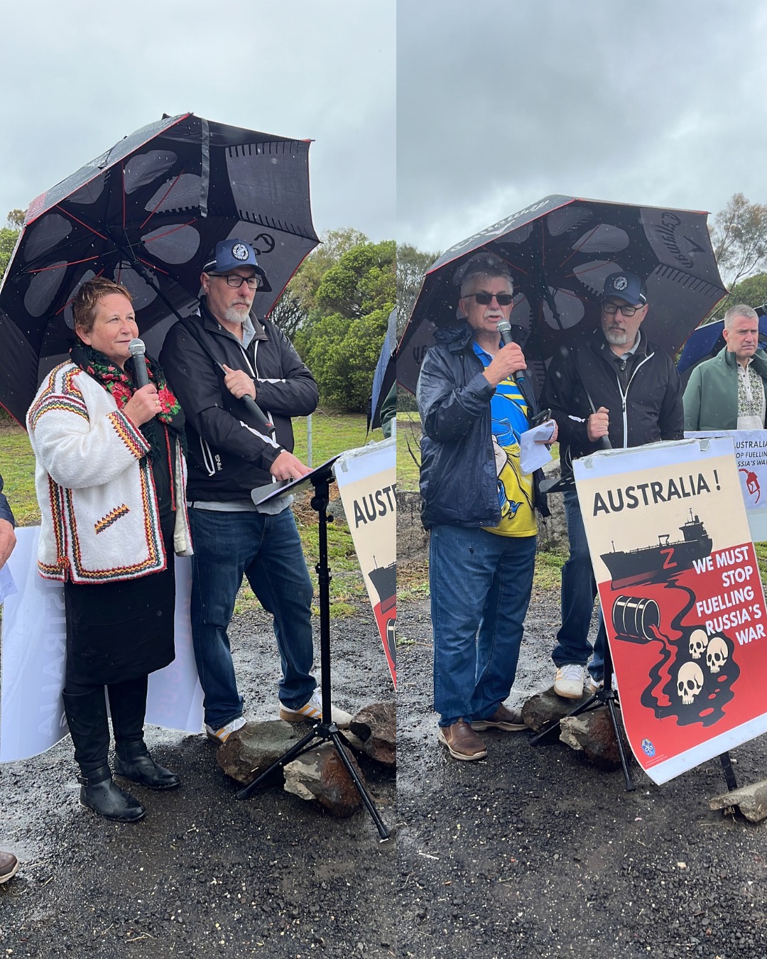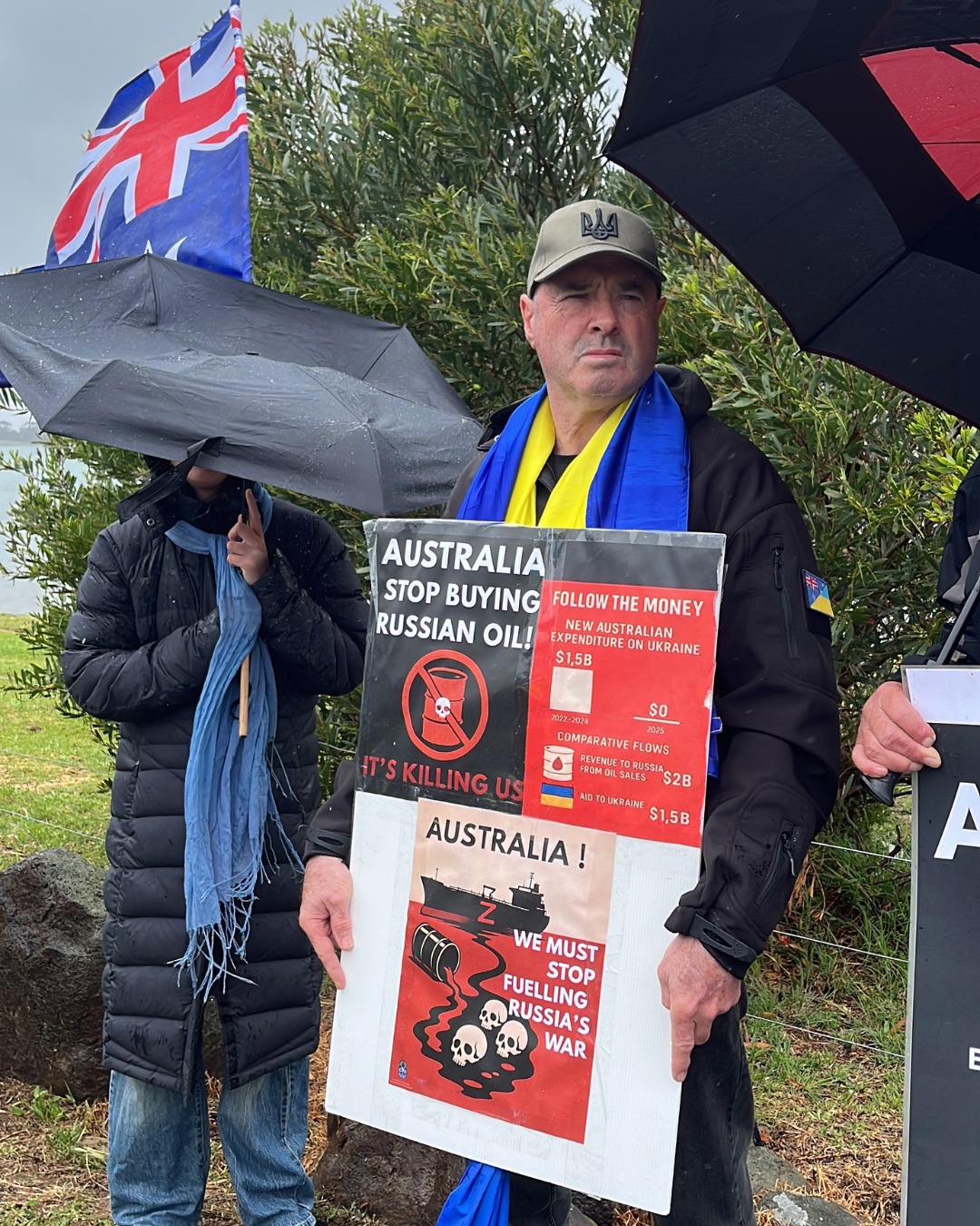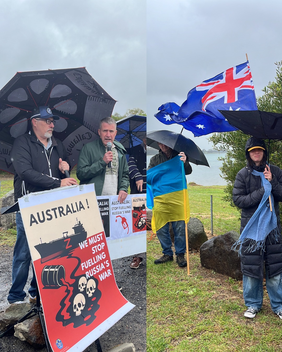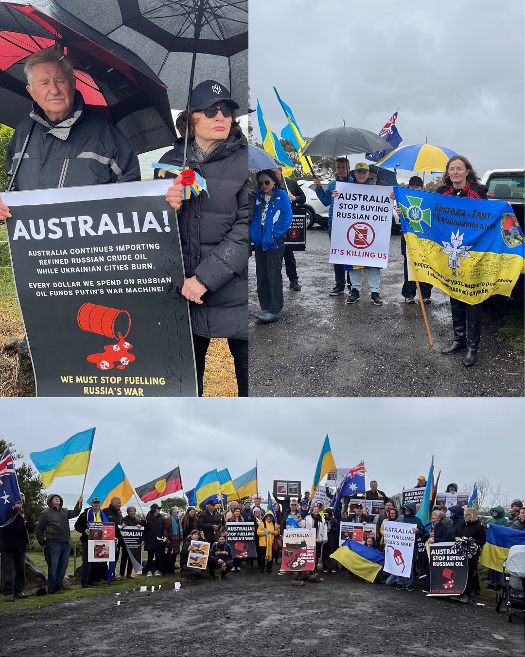 За підтримки AFUO та команди кампанії Stop Fuellingrussias War, учасники акції закликали паливні компанії очистити свої ланцюги постачання та звернулися до уряду Альбанезе із вимогою закрити лазівку в санкціях проти Росії, яка з моменту повномасштабного вторгнення принесла Кремлю мільярди.