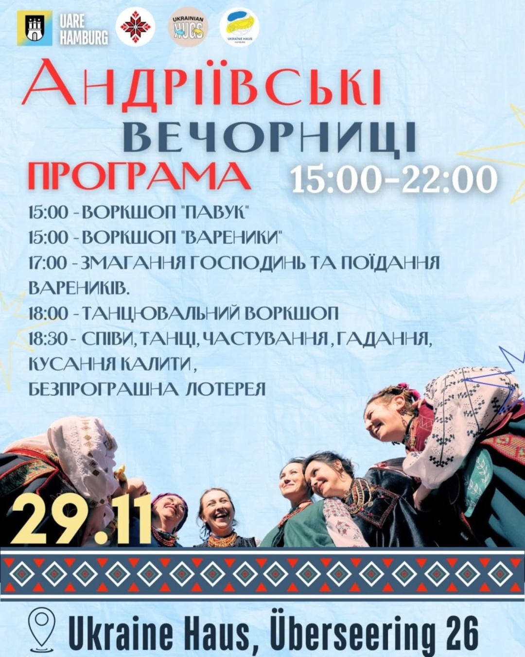 Святкове зібрання відбудеться 29 листопада у гамбурзькому Українському домі (Überseering 26, Hamburg) з 15.00 – 22.00.