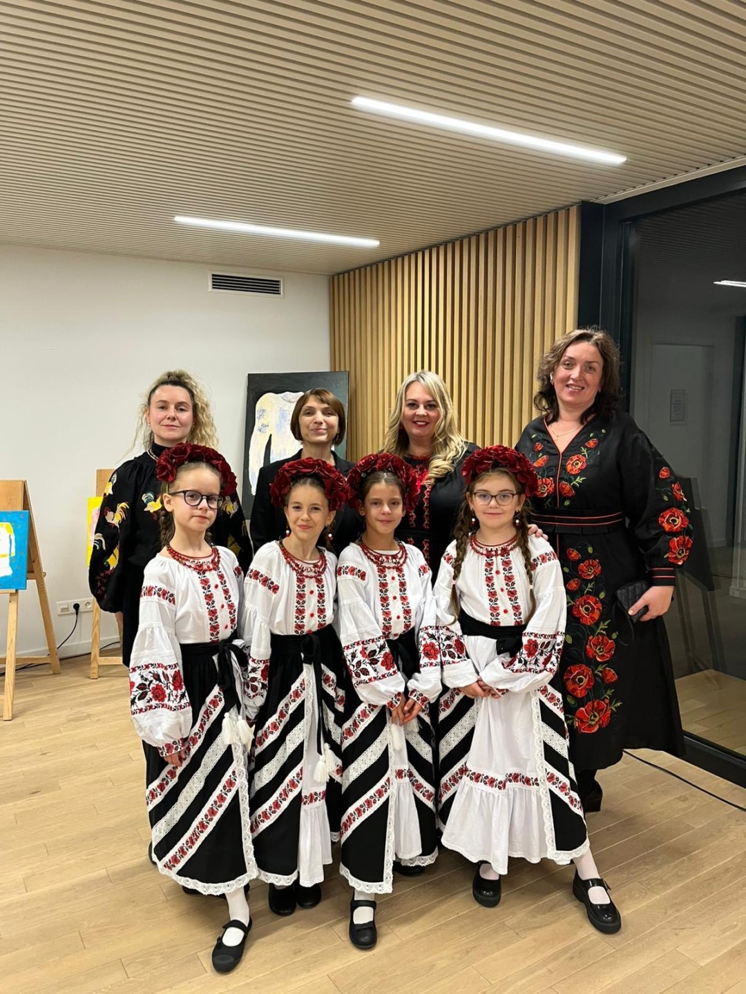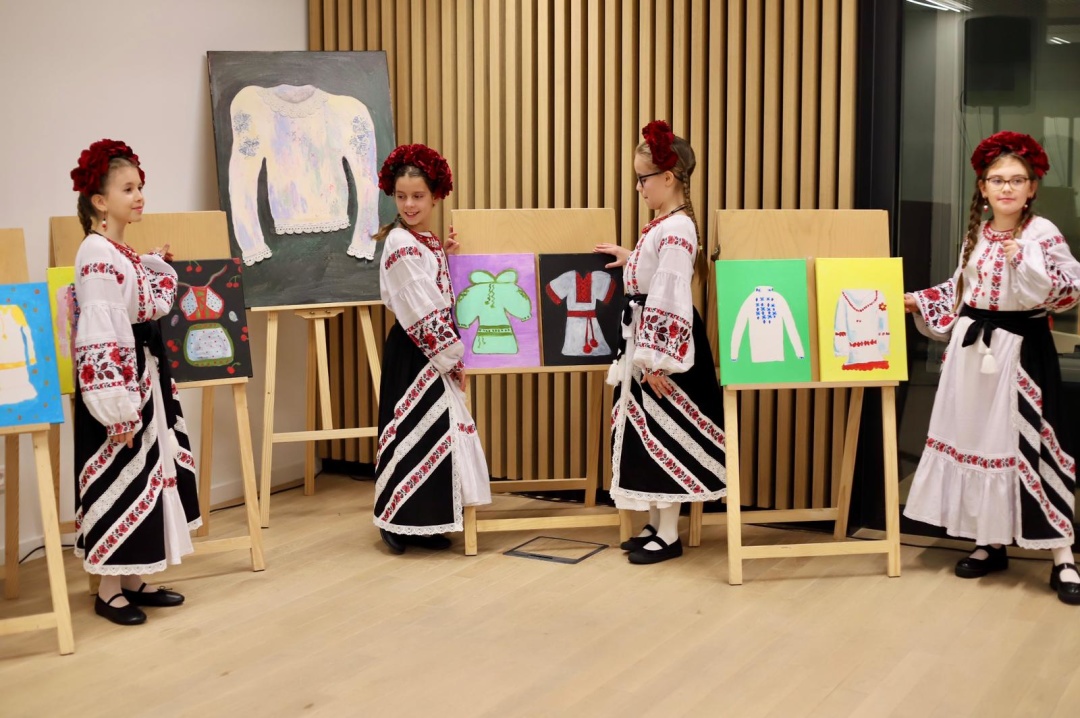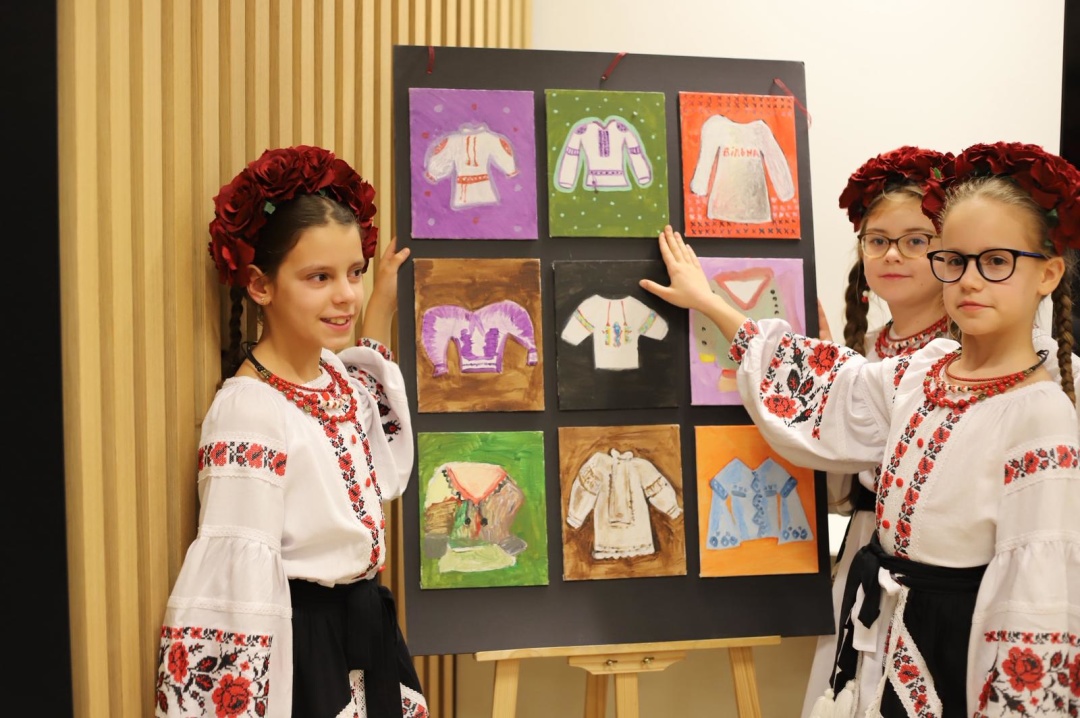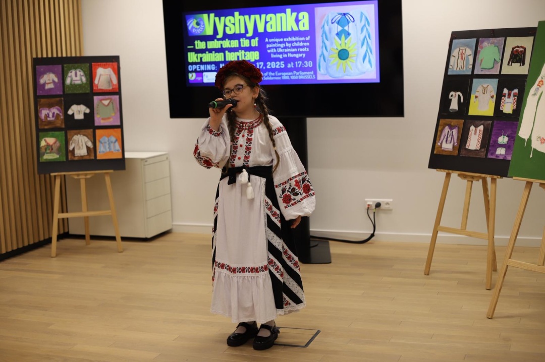 Відкриття виставки супроводжувалося виступами: українські дівчата, учасниці проєкту, виконали українські й угорські пісні.