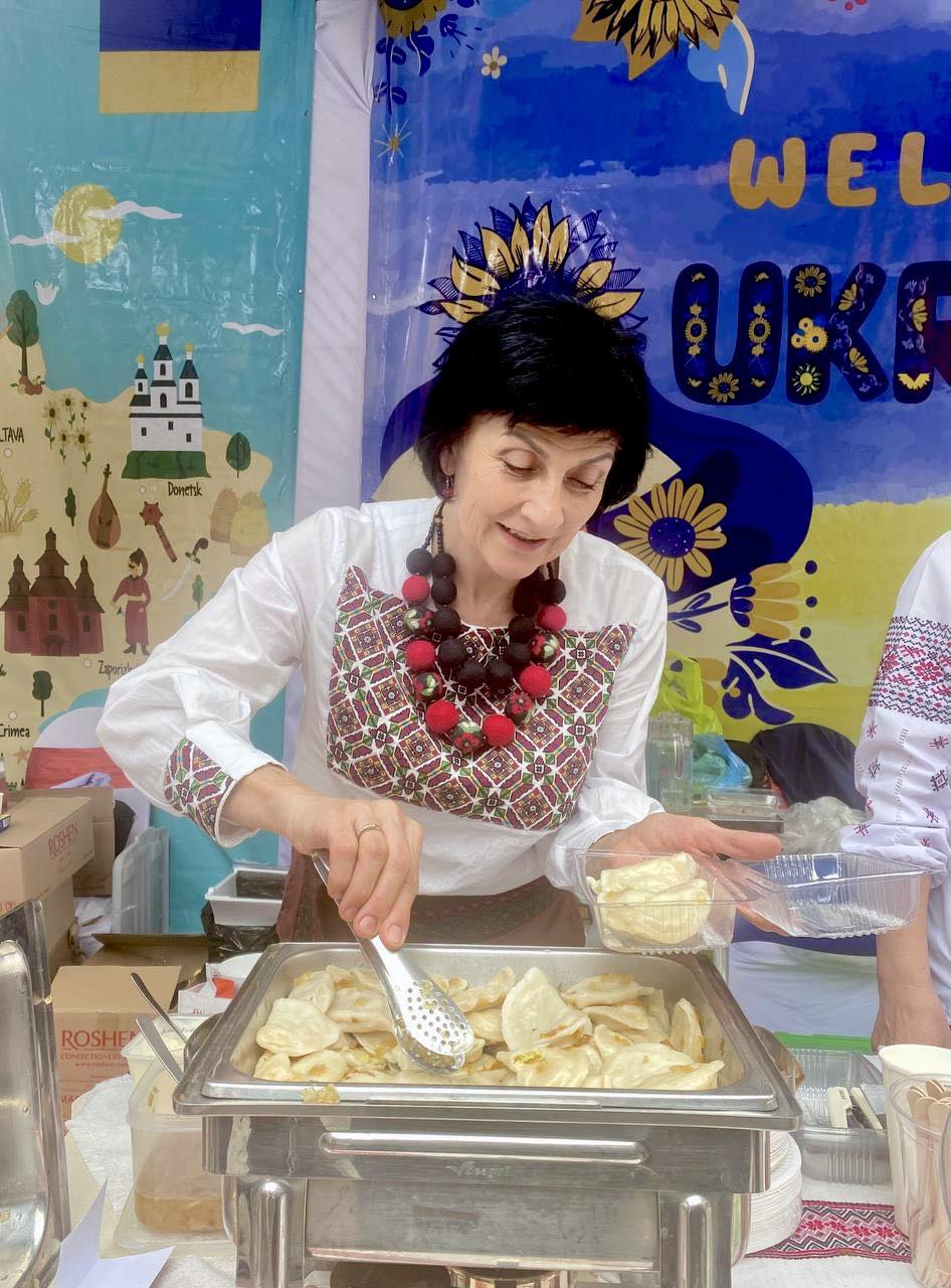 Відвідувачі українського стенда мали нагоду відкрити для себе різноманіття української кухні. Їм пропонувалися класичні страви – від борщу, вареників та українських котлет до свіжої домашньої випічки, такої як медівник і горішки. Багато гостей також скористалися можливістю придбати якісні українські цукерки.