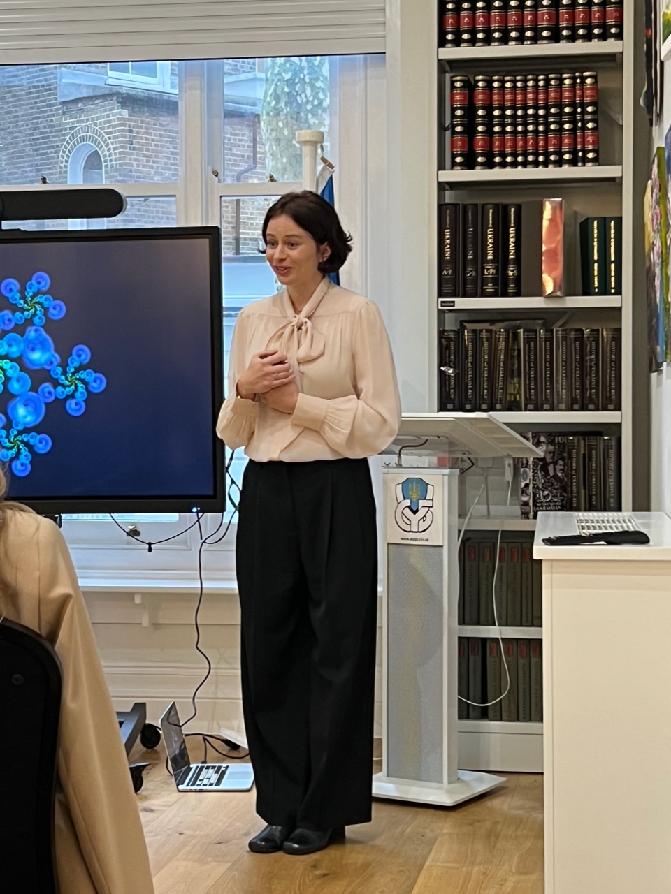 Виступ викликав жвавий інтерес, і після офіційної частини учасниці долучилися до оглядової екскурсії бібліотекою та виставкою мистецьких творів The Best of Diaspora.