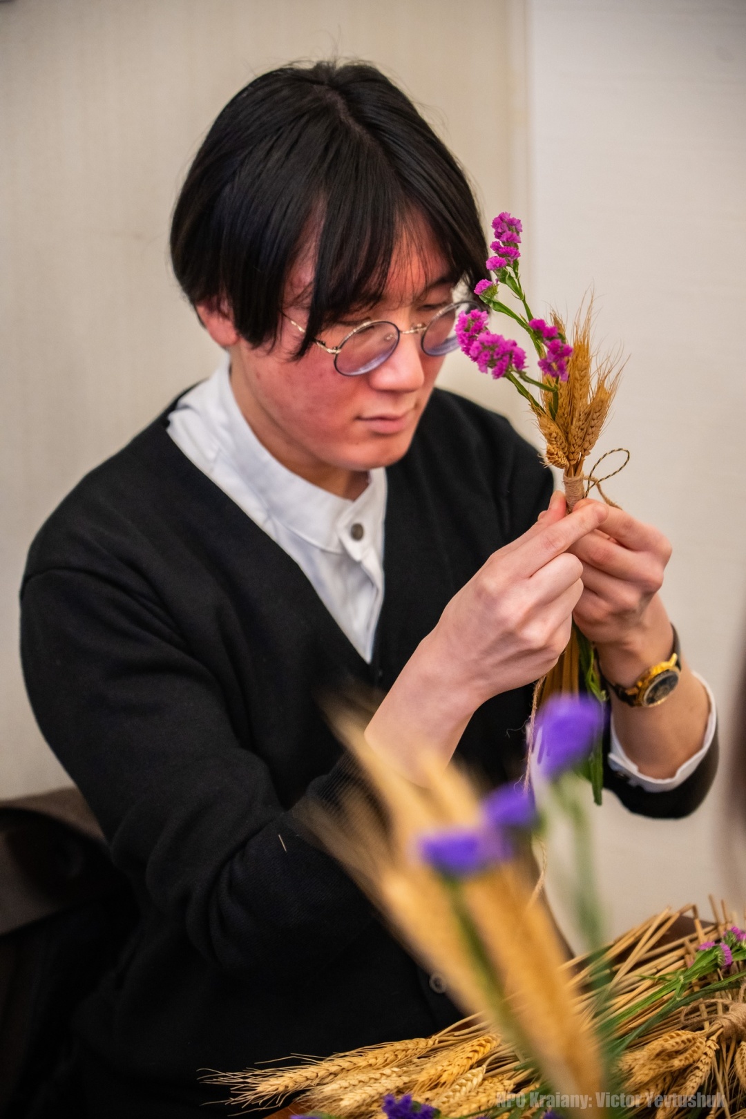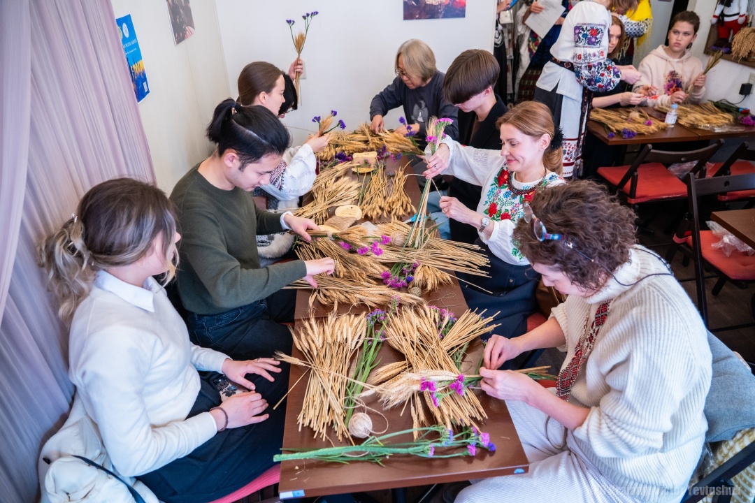 Дідух, що символізує дух предків, виготовляли з колосків пшениці та сухоцвітів. Учасники дізналися про його значення як важливого атрибуту українського Різдва.