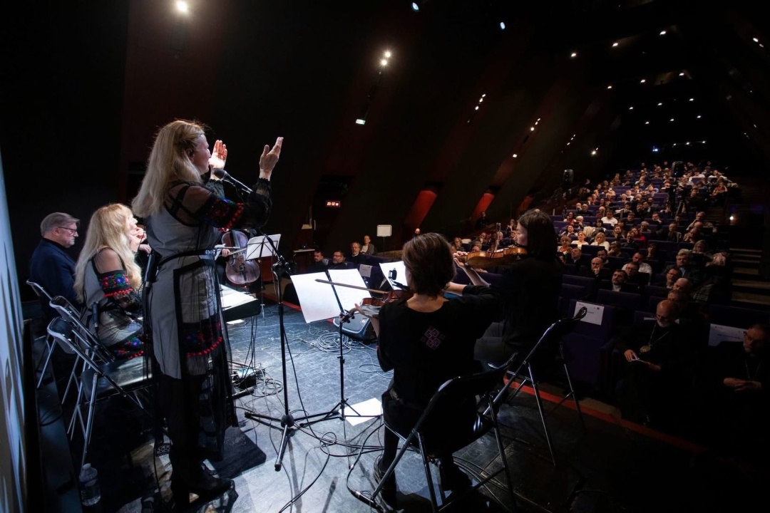 Програму презентації доповнило музично-драматичне дійство на основі книги: читання уривків французькою мовою у виконанні канадського актора Григорія Гладія, виконання українських пісень заслуженими артистками України сестрами Лесею та Галиною Тельнюк у супроводі струнних і фортепіано; інструментальний супровід — Олега Репецького.
