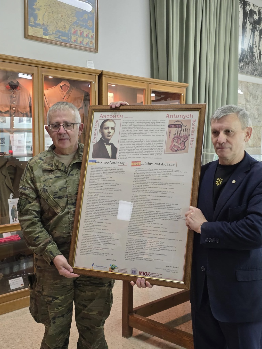 Він зазначив, що передача твору Антонича, написаного у 1936 році як присвята захисникам фортеці Альказар, має глибокий символізм – напередодні 90-х роковин героїзму захисників Толедо, мужність і відвагу вже у XXI столітті демонструють українські воїни у боротьбі з російським агресором.