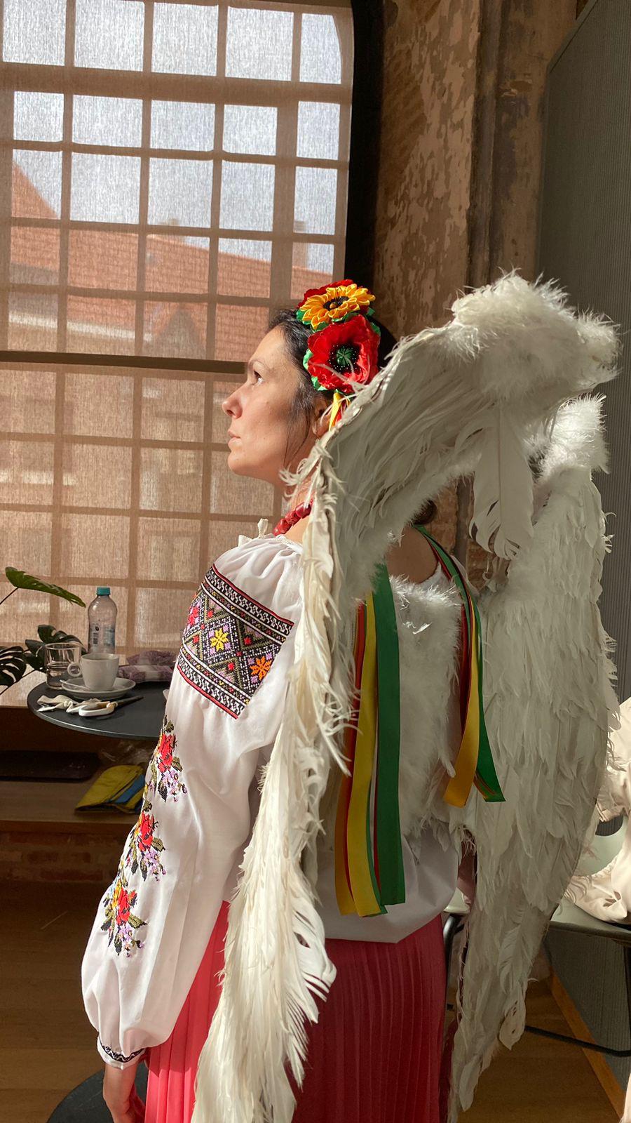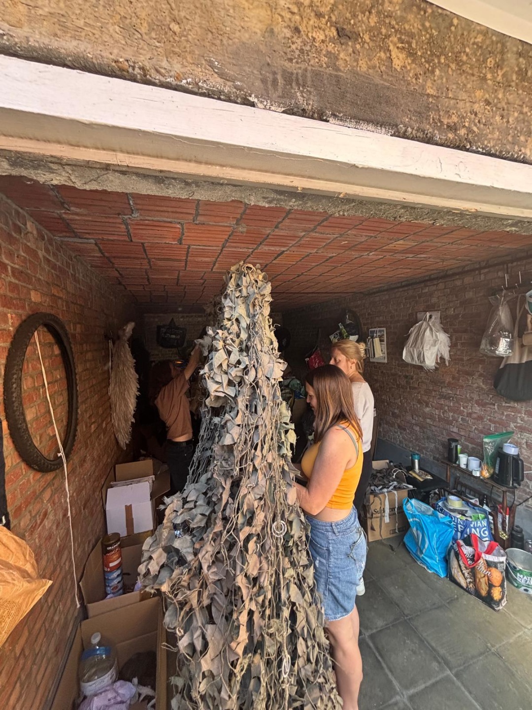 Ще в Українському домі розмістилася громадська організація - волонтерський хаб FV Kryla. Це активний осередок, що підтримує Сили оборони України. Її керівниця Ольга Швайка, яка приїхала три роки тому з Харкова, почала волонтерську діяльність ще в 2022 році, поки проживала в Брюсселі. Після переїзду в Мехелен, вона орендувала гараж получ зі своїм житлом. Саме в цьому неопалювальному маленькому гаражі й зародився проєкт із плетіння маскувальних сіток.